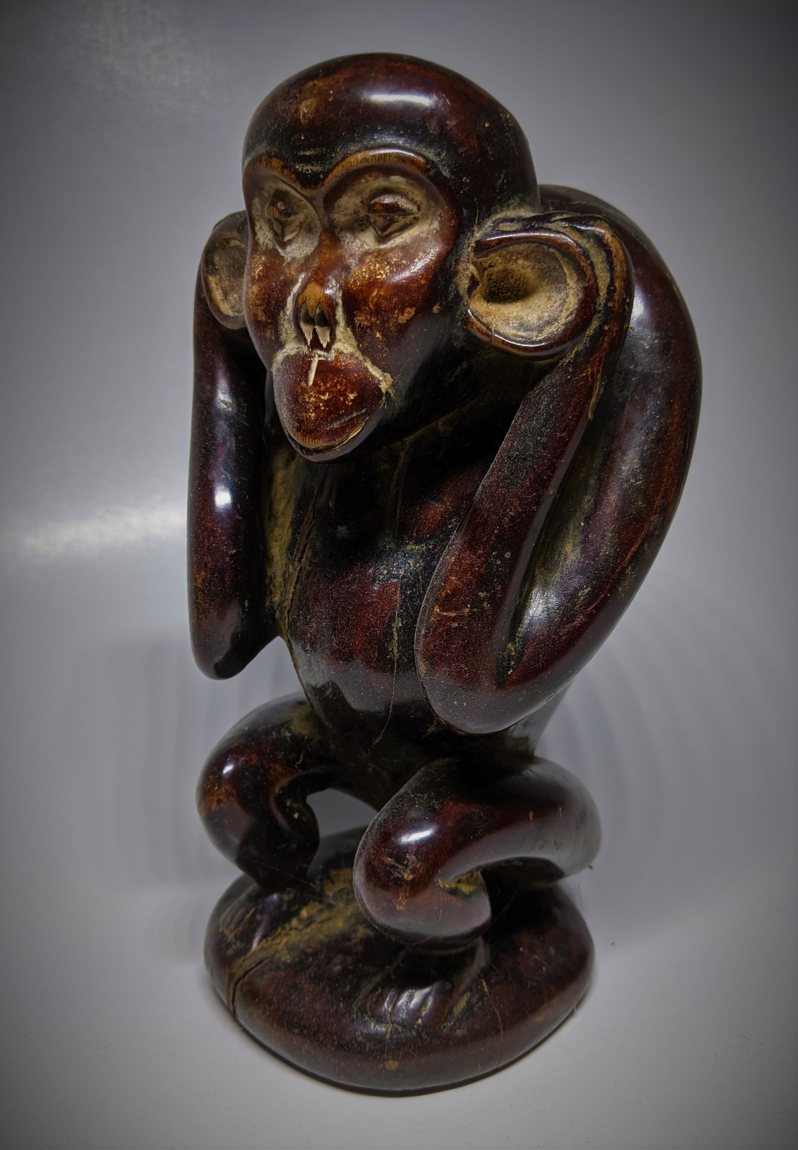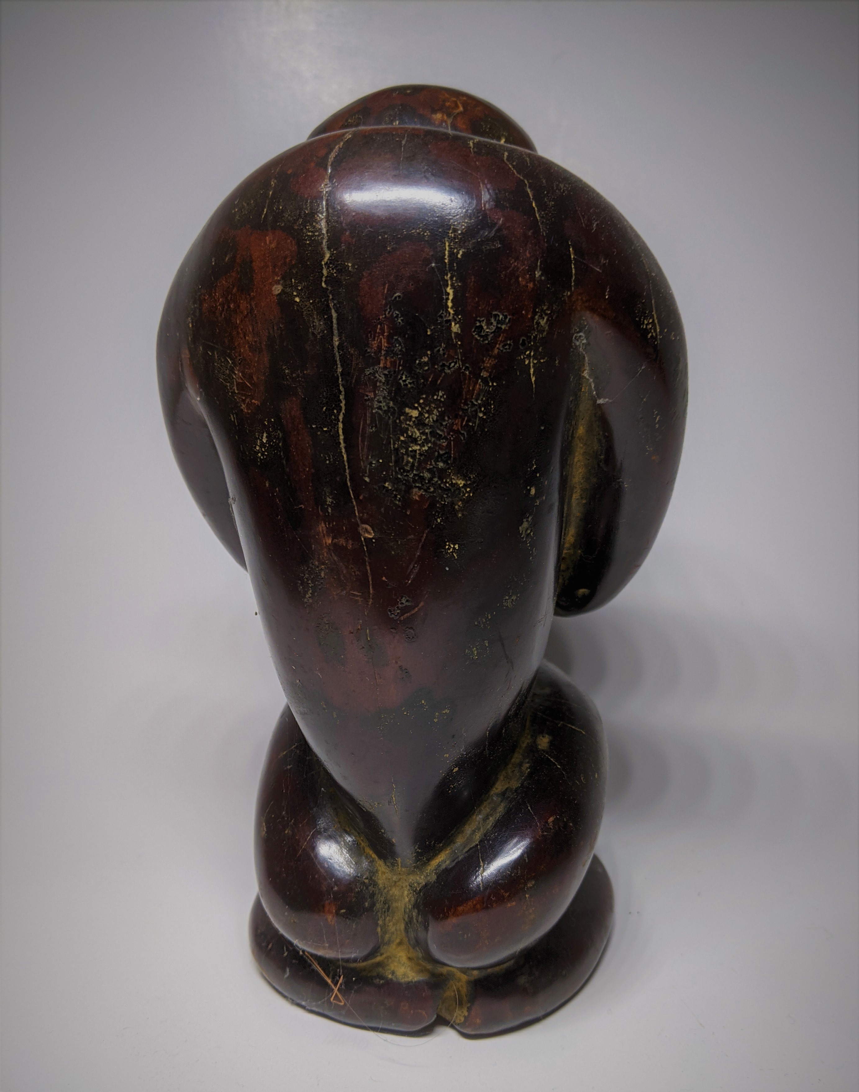 The face with kaolin, showing strong age. The surface well polished. 7.5" Height. Modellos: Here, the start of some numerous rarities, small master carved teaching tool pieces, from numerous tribes, most all outstanding rarities which the Massachusetts Museum had a particular interest in, and built a fine and rare collection. This higher grade of items in the Massachusetts African Arts Museum put an emphasis on certain rarities, namely master carver's miniatures. These carved presentations of a type, in miniature, to be handed around and studied by the masters student’s body of carvers. The practice and generally only singular output placed these as rather coveted momentos within any tribal 'treasury' and more difficult to acquire. A goodly number, most from this collection come from African specialists in Belgium and France. In titles, where 'Modello' is written, some initial ones of these great miniature antique pieces, are here offered, most from prior museum and a few other sources.