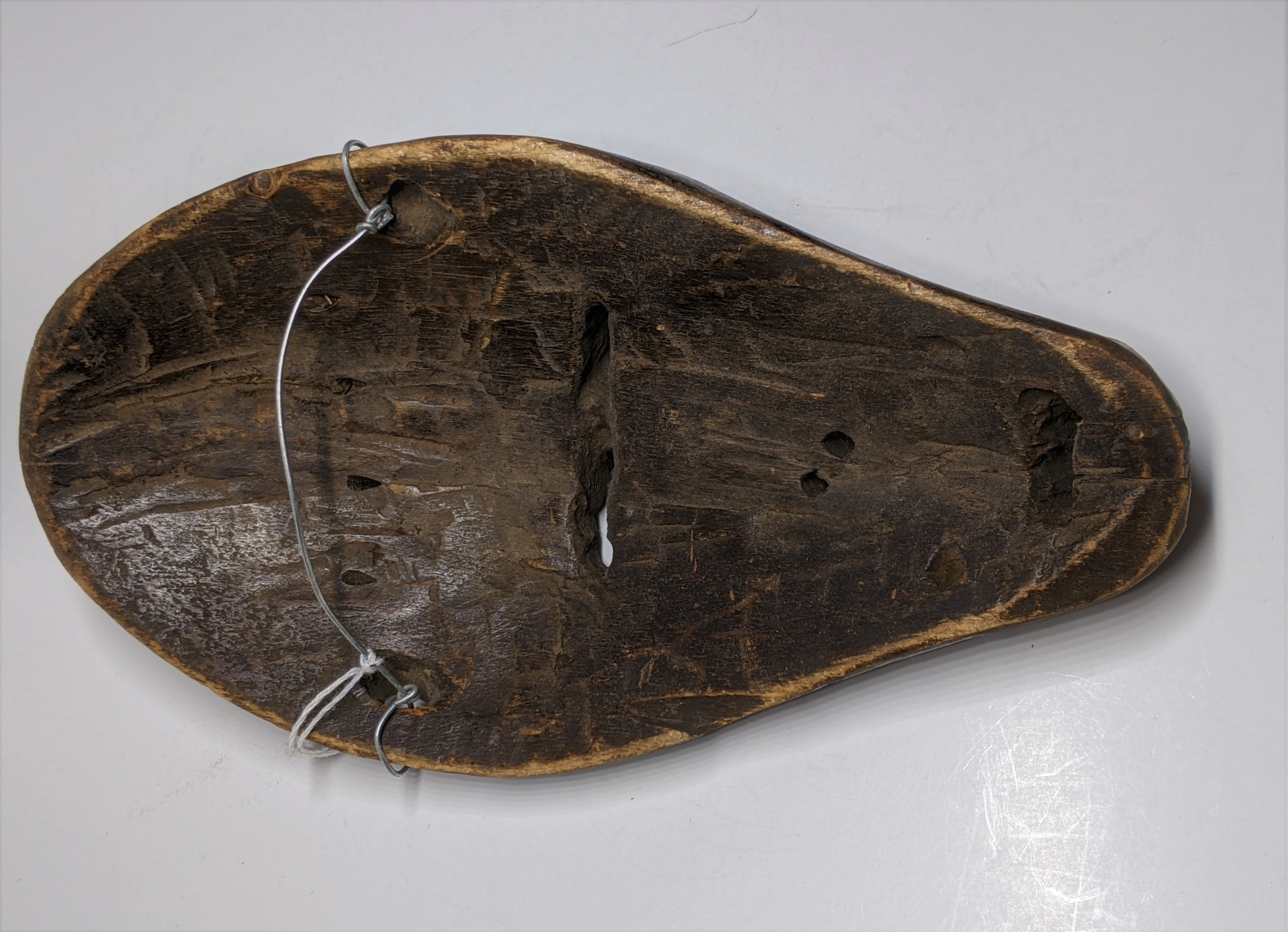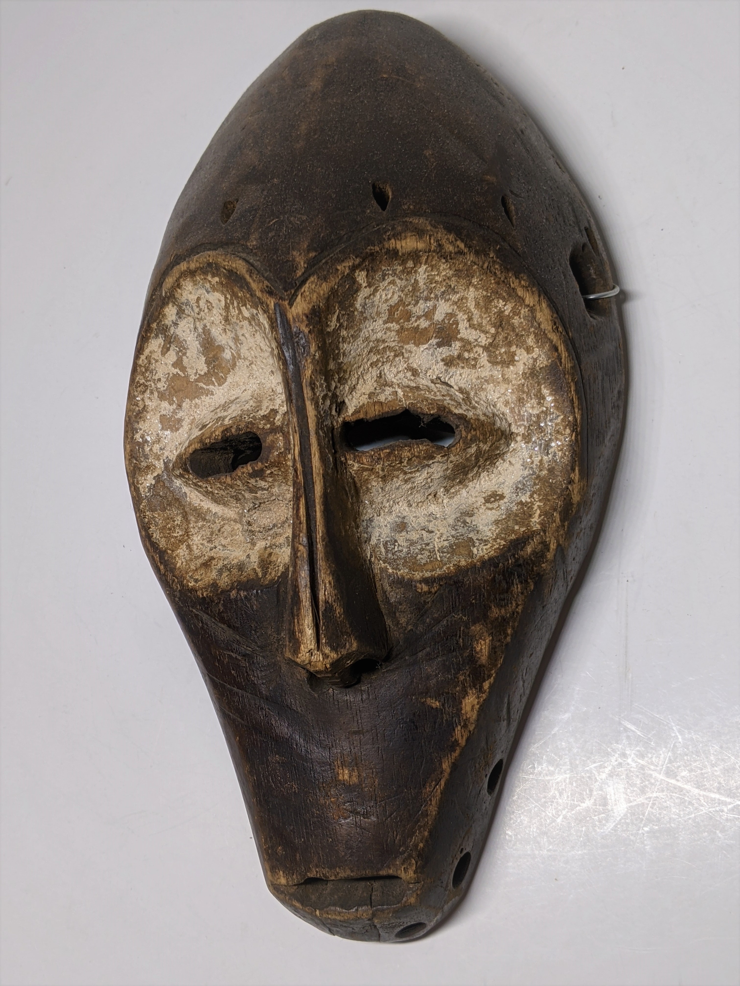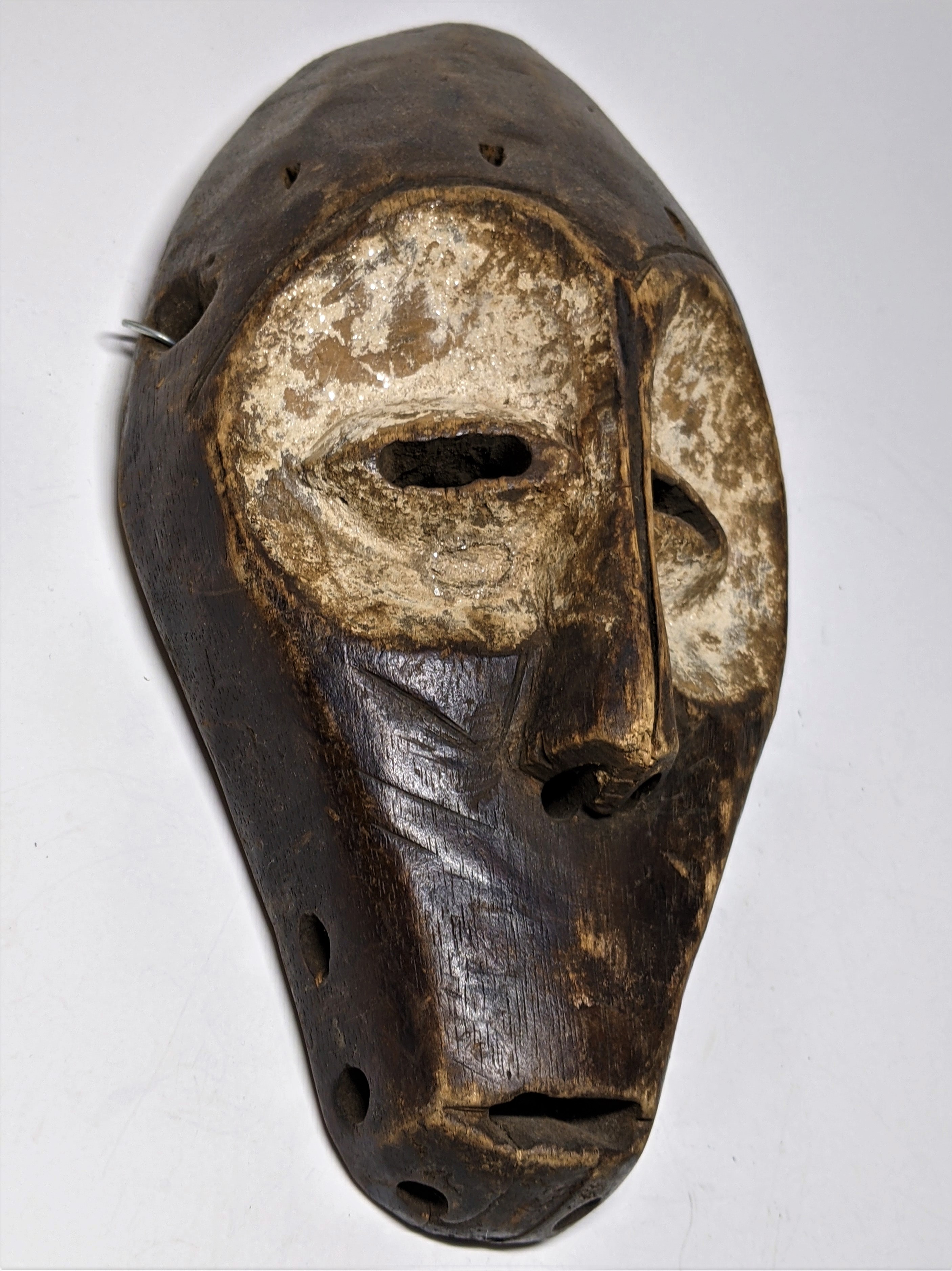 1920's or 1930's from Central Congo. A belt/shoulder or childs' mask with remains of its original kaolin. 9" Height.