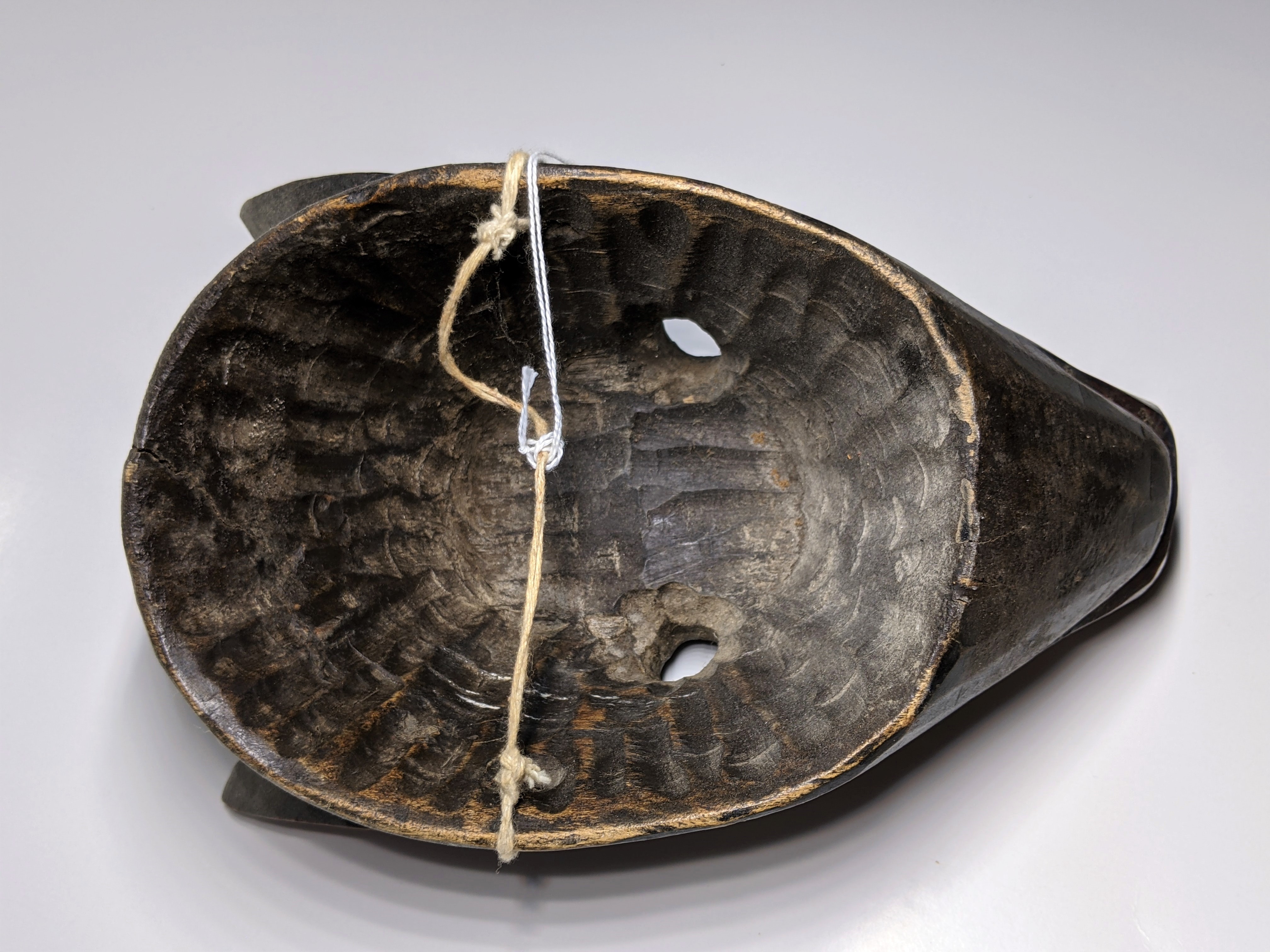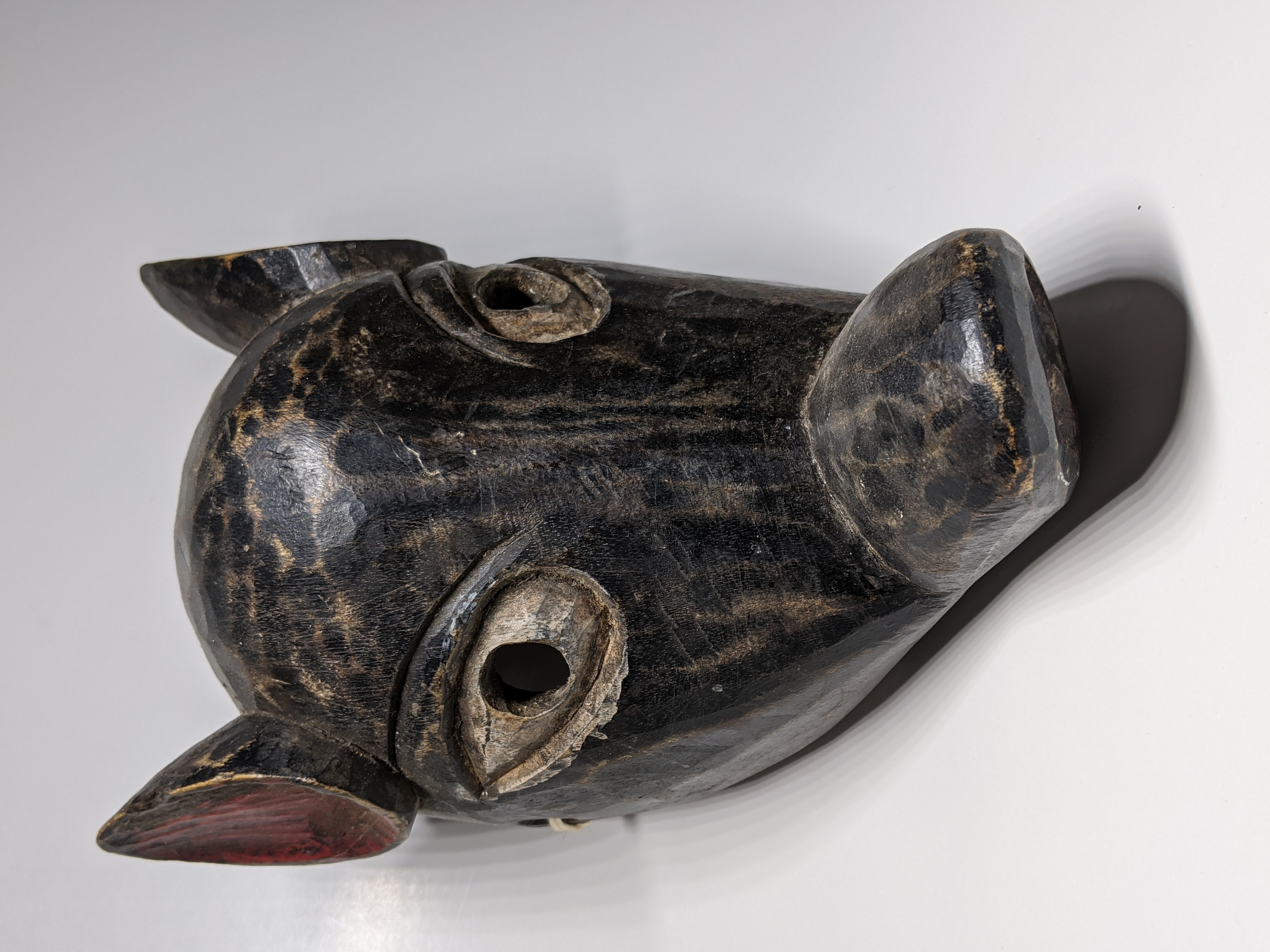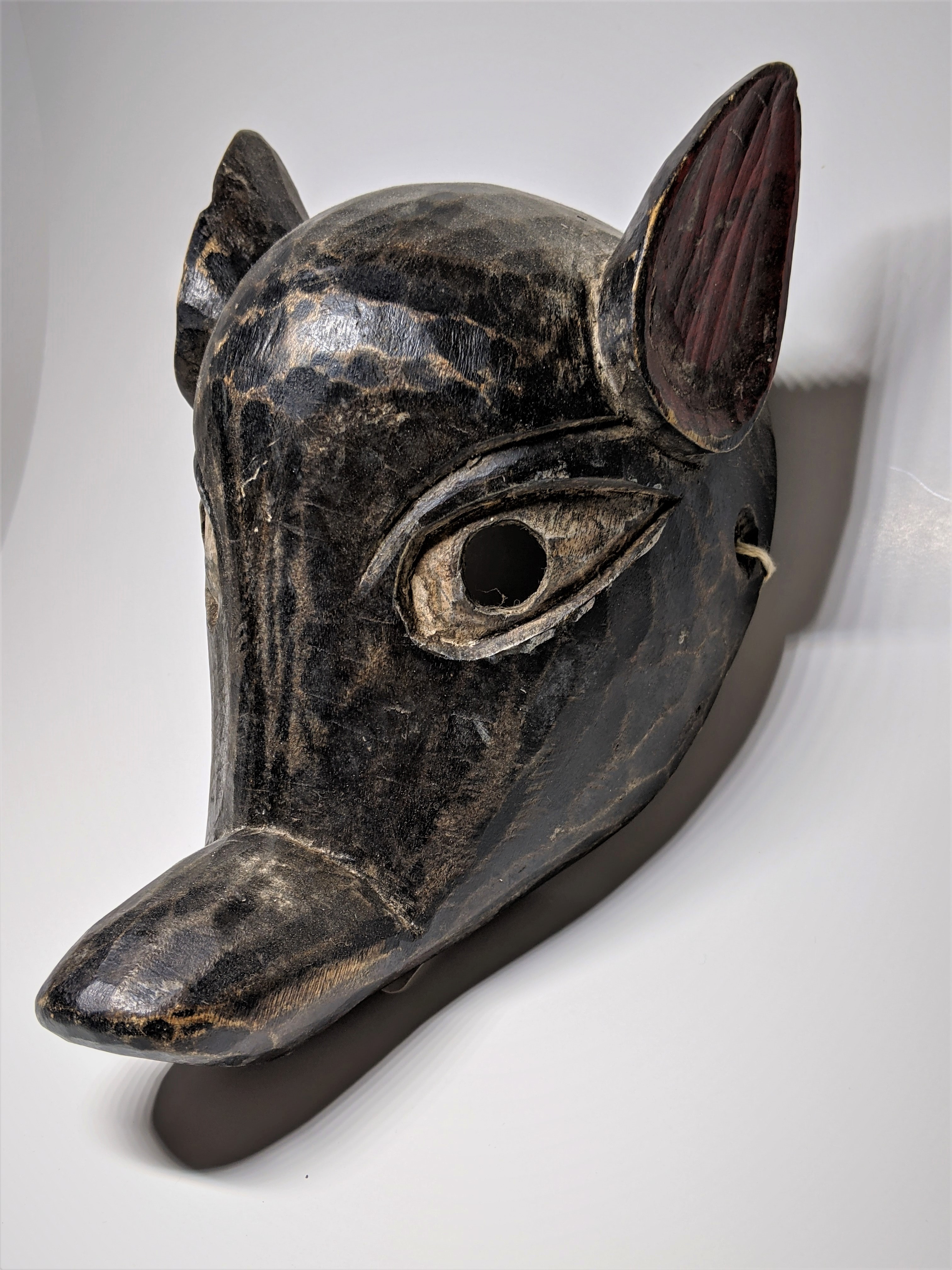 West Africa, probably Nigeria. Likely for a child. Tribal with good age. Eye and ear colorings later enhanced. 10" Height.