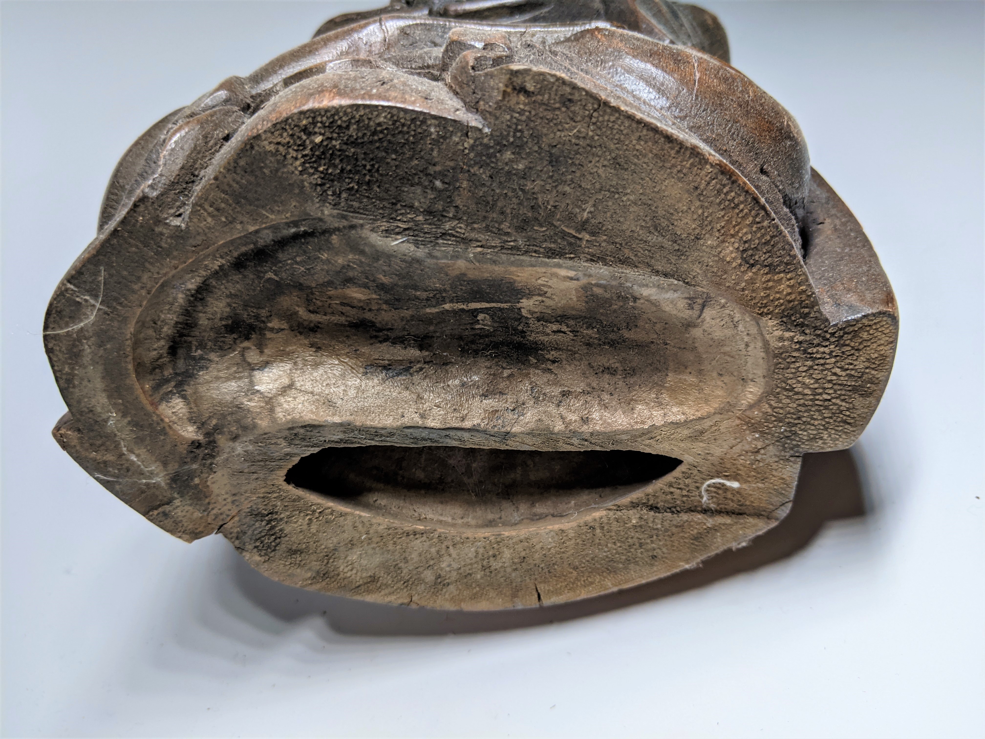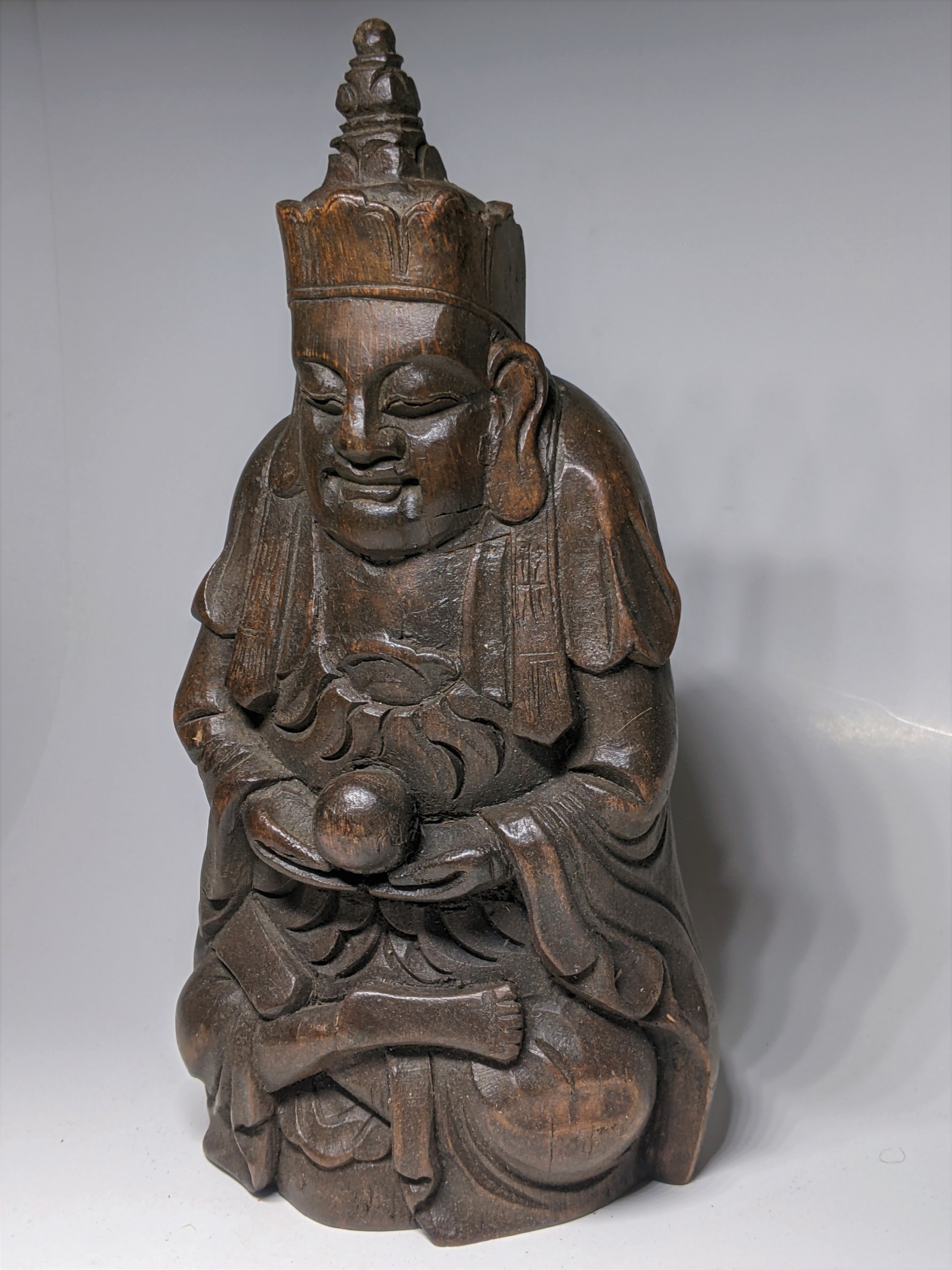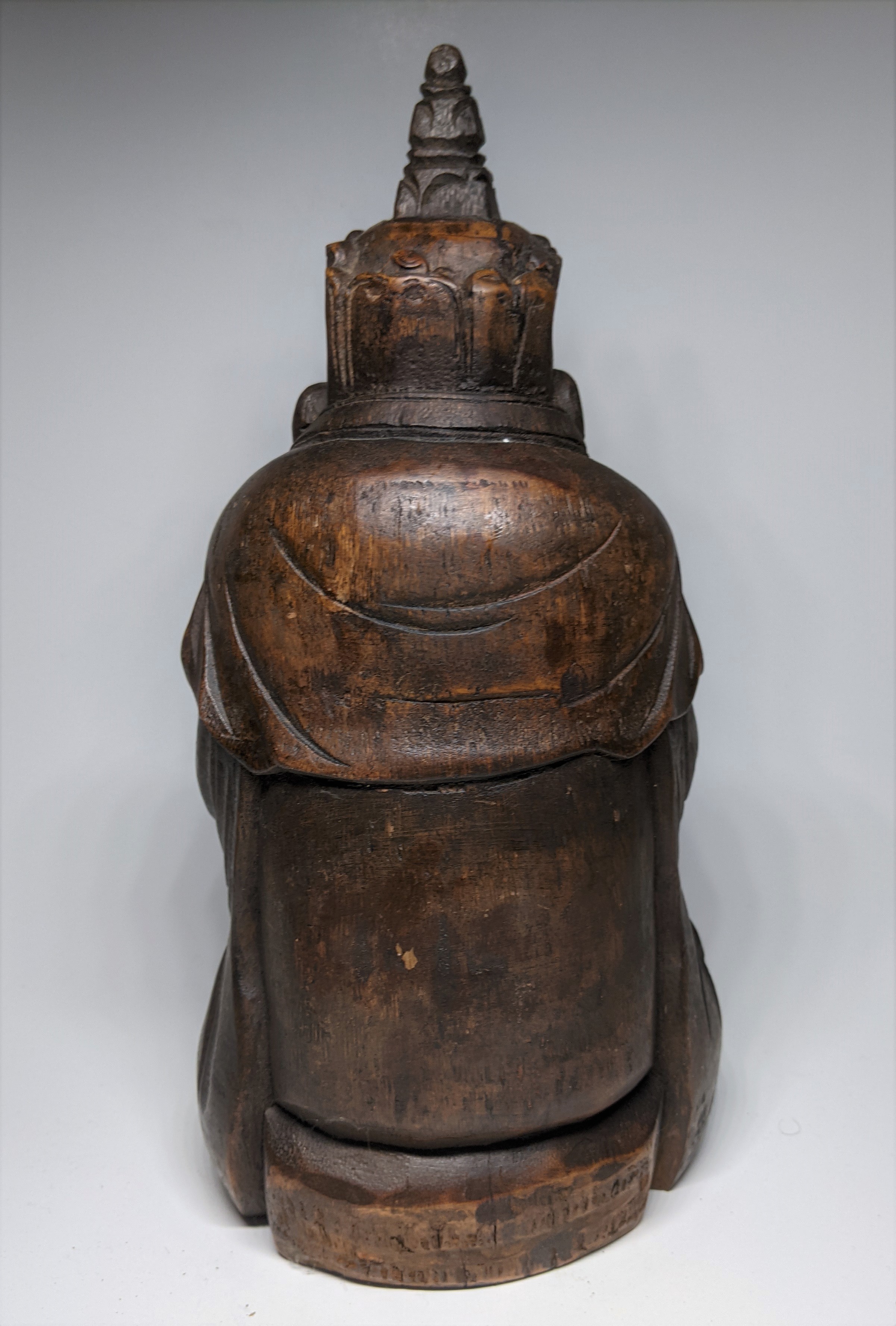 Early to mid 18th century, uncommon quality and size for a bamboo carving. A seated Buddhist sage or scholar. Fine condition with untouched surface. South China, Cantonese. 12" Height