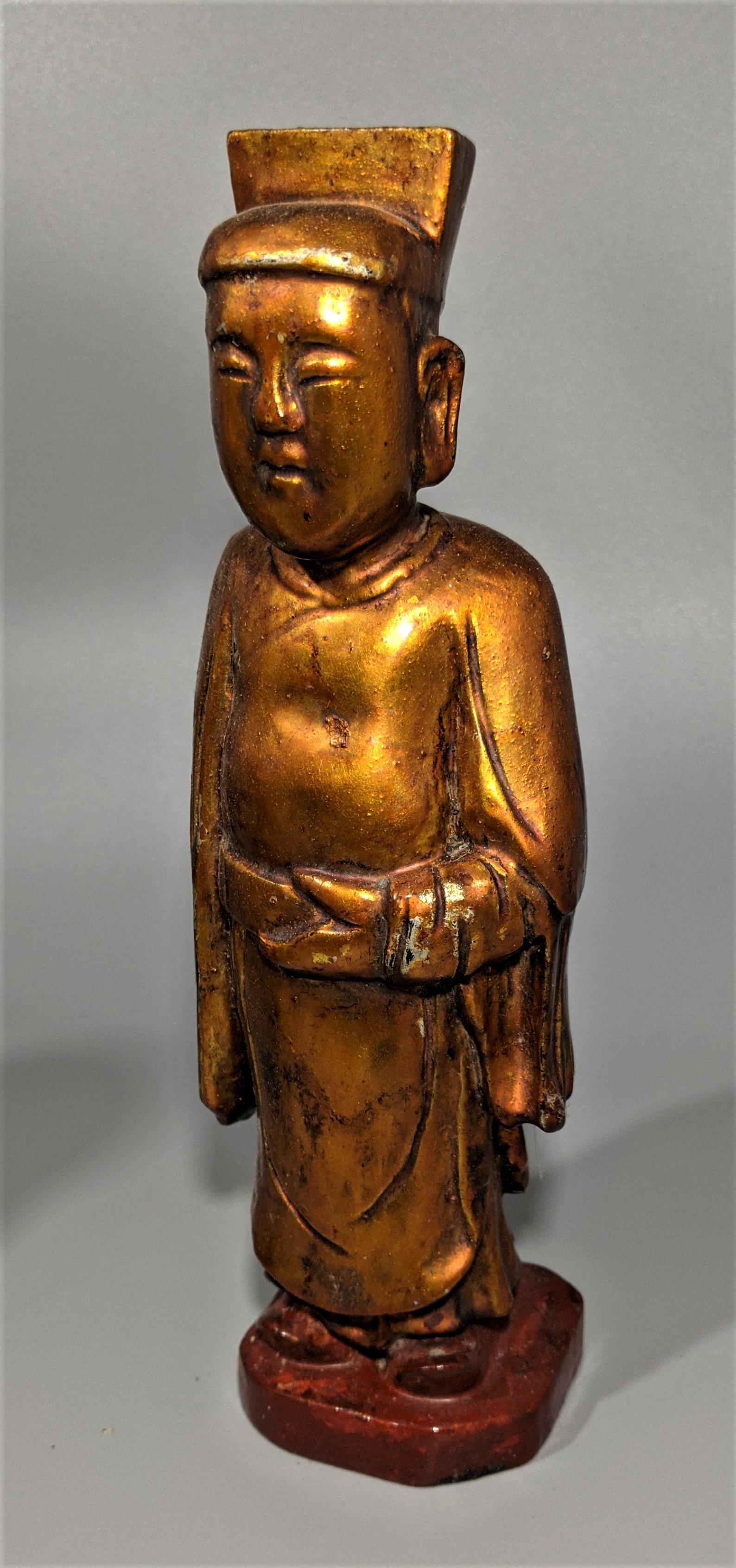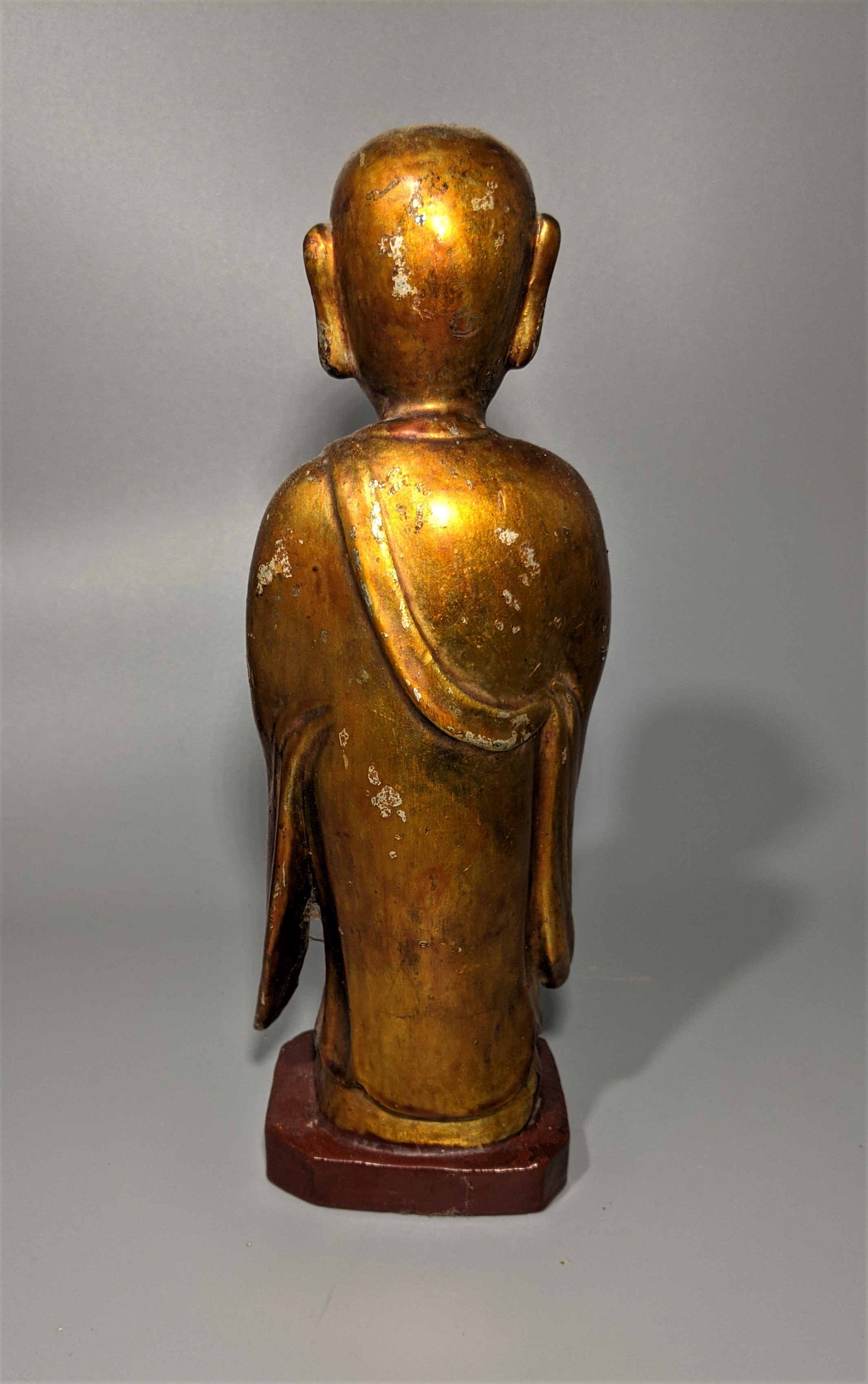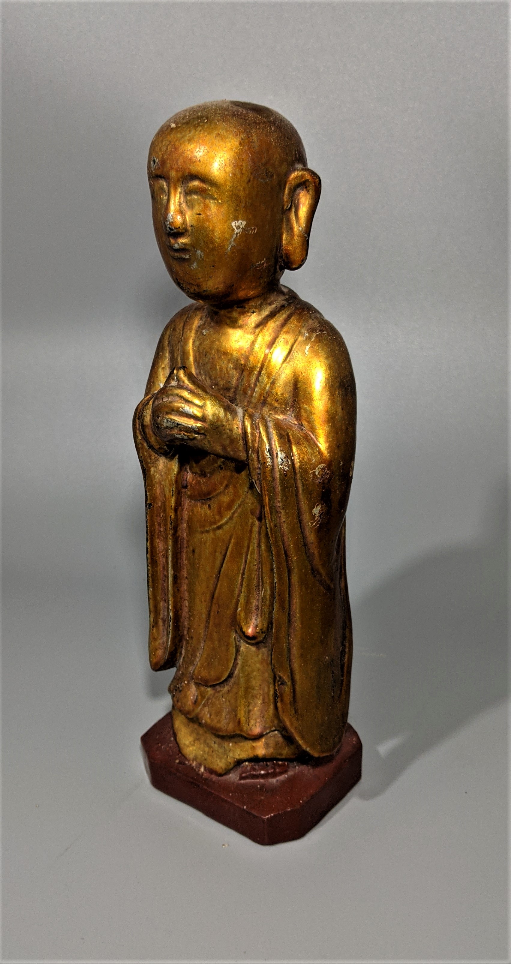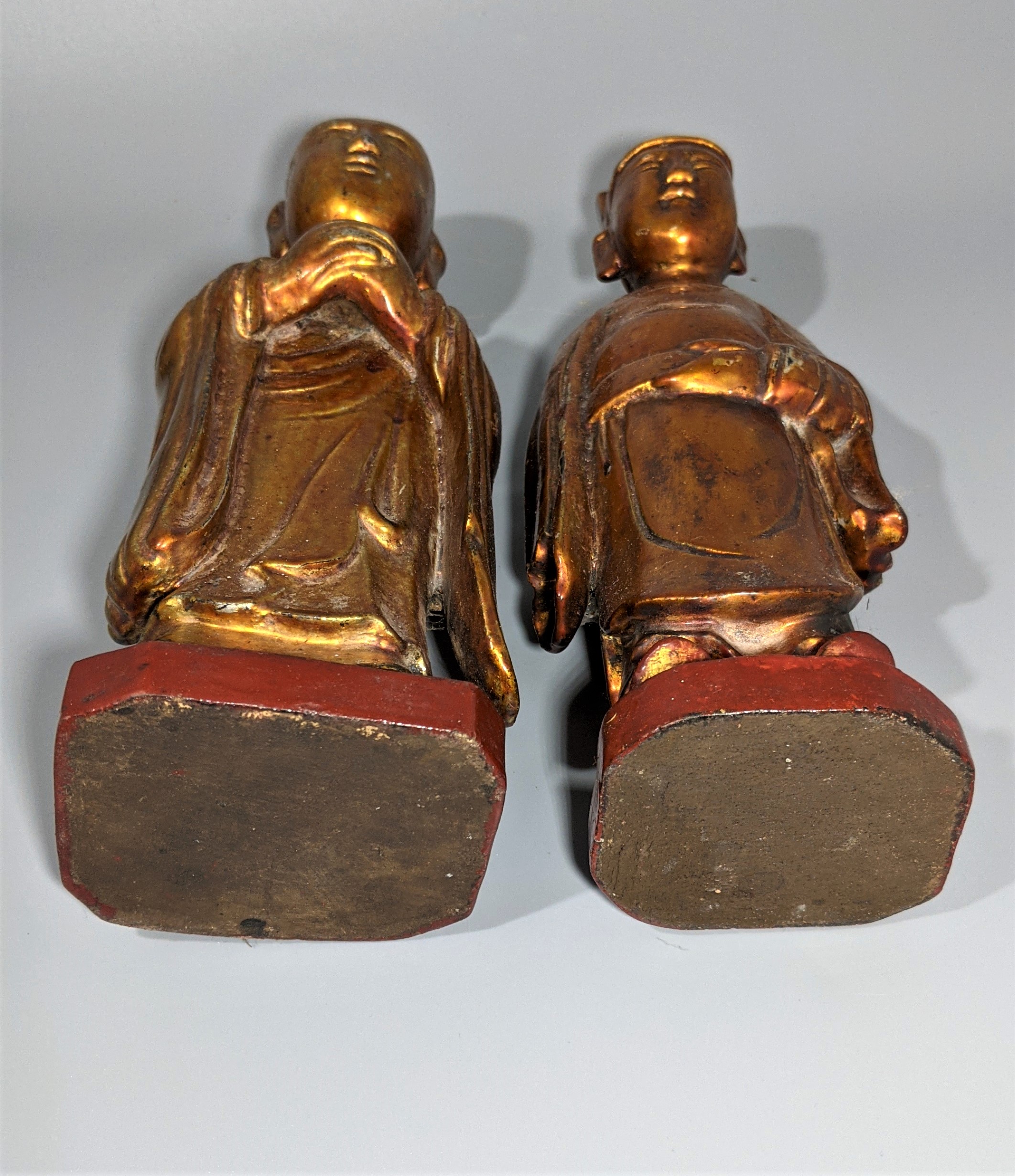 Burma, early to mid 19th Century, lacquered and gilded carved wood. Nice condition, 9.5" & 9.75" in Height