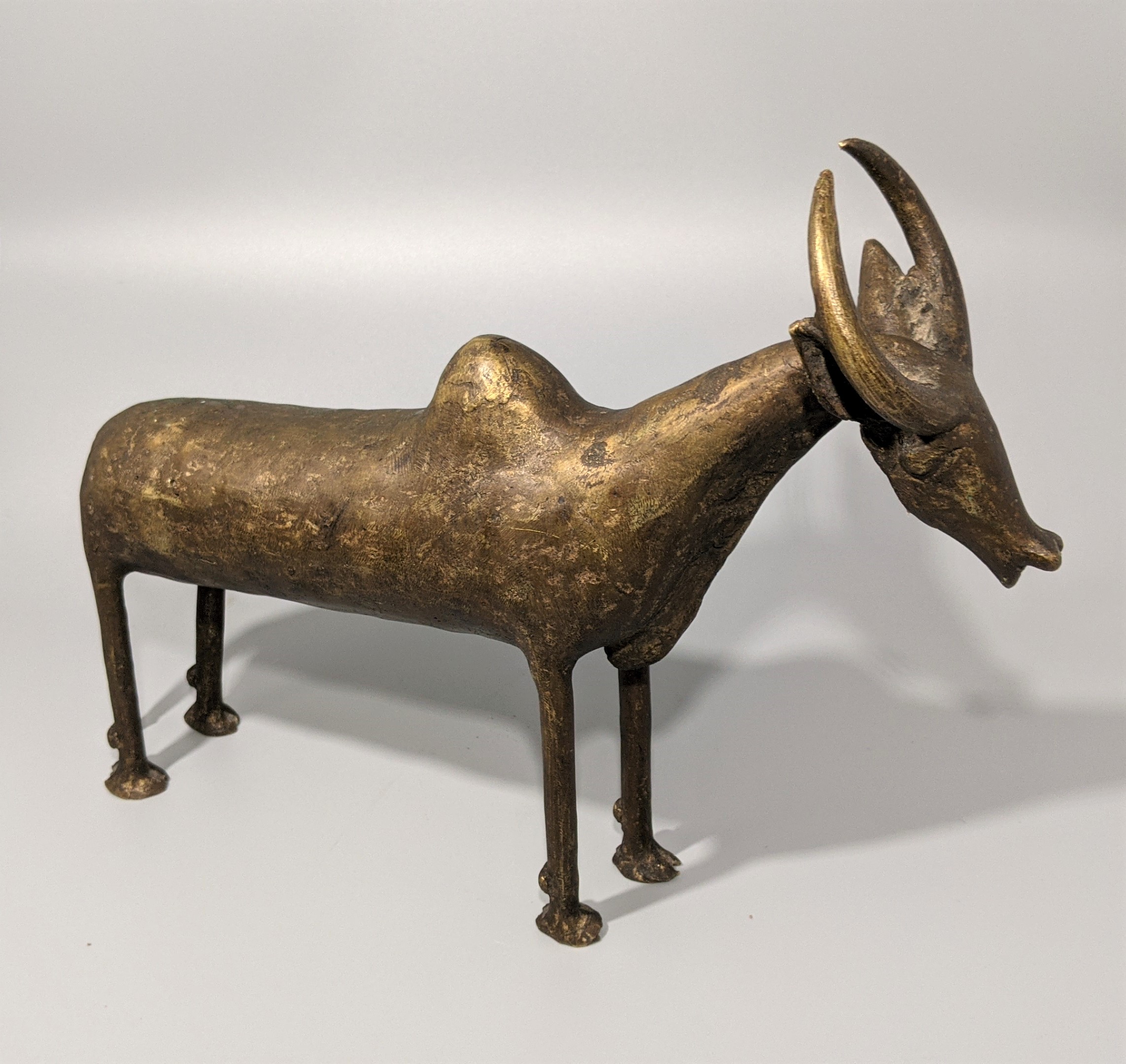 From the Cross-River region, an area separating Cameroon and Nigeria. Old, likely 18th or 19thcentury. Natural untouched surface. A bronze with high brass content. Exceptional size, solid cast. 11.5" height, 15" length. Ex-Museum, Mass.