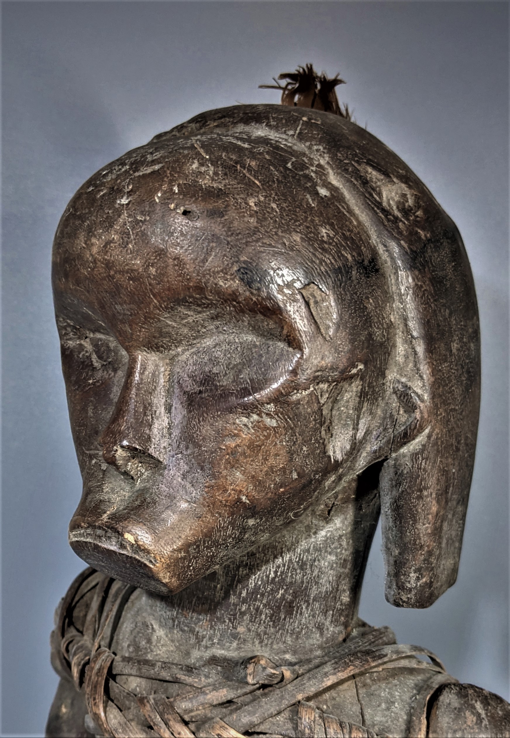 Uncommon with moveable arms. 1900-1920s. 18 1/2 inches high.